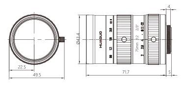 500万像素高分辨率、高对比度、高清晰度 大口径比设计,适应不同亮度环境 紧凑结构设计,可配相应规格尺寸滤镜使用 使用多层镀膜技术,有效防止眩光鬼影 光圈档位精确调节,并匹配调焦和光圈锁紧螺丝 可匹配500万像素级相机 可适用于2/3”英寸靶面